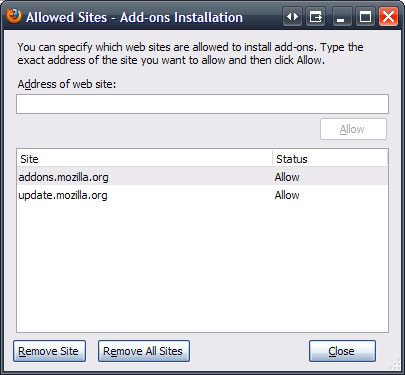 Add https://secure.brickyard.com to the web site list by typing it into the "Address of web site" text box and then clicking the "Allow" button.