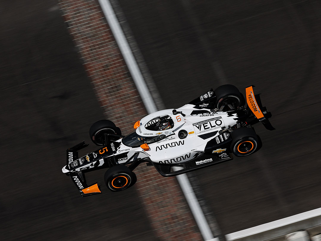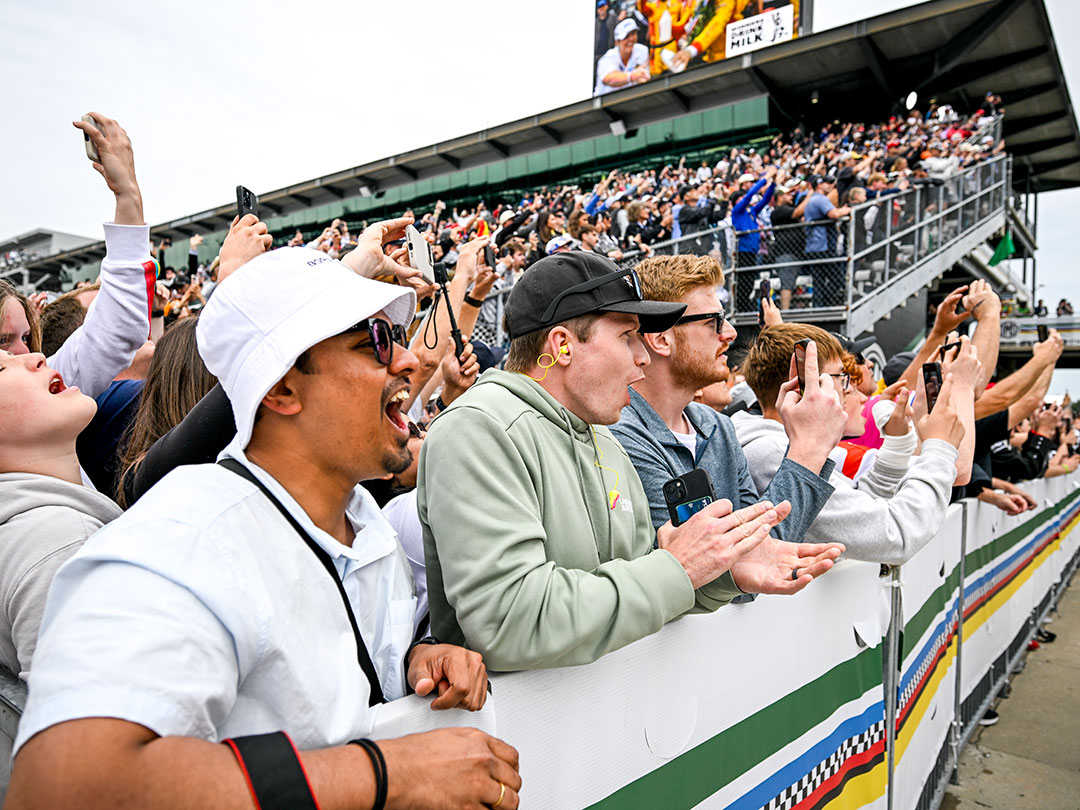 Alex Palou celebrates victory in the 109th Running of the Indianapolis 500 Presented by Gainbridge