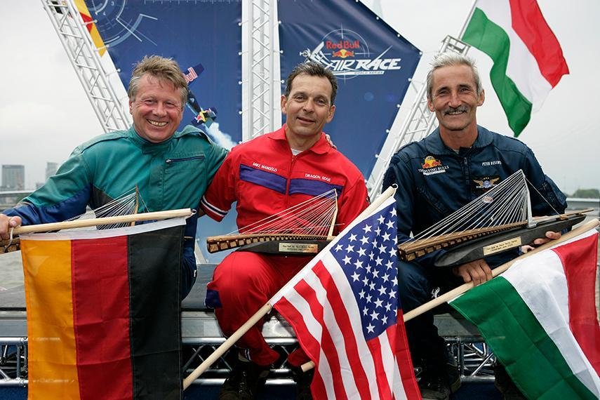 His was the first year the Red Bull Air Race was a ratified World Championship. Ten pilots took part over seven races. There was only ever going to be one winner in that year. American Mike Mangold took five of the wins and only had one race where he wasn't on the podium – a fifth place finish at the Rock of Cashel in Ireland. Second place went to Peter Besenyei and third to Kirby Chambliss.